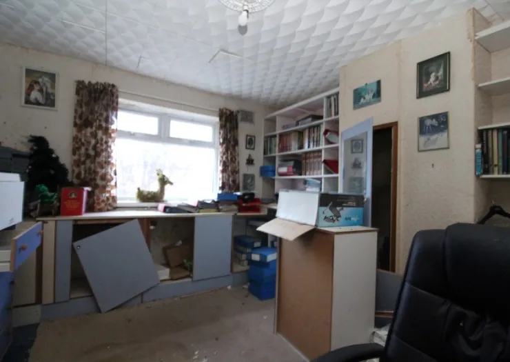 A semi-detached house in need of refurbishment, and comprising: hall, lounge, dining room, kitchen, three bedrooms and shower room. Gardens to the front and rear.