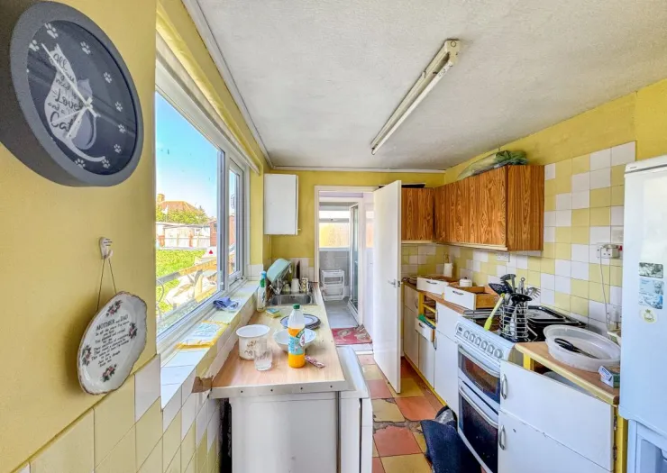 A two bedroom, mid-terrace house with front and rear gardens. The property requires refurbishment and is situated on a residential road close to local shops and amenities.