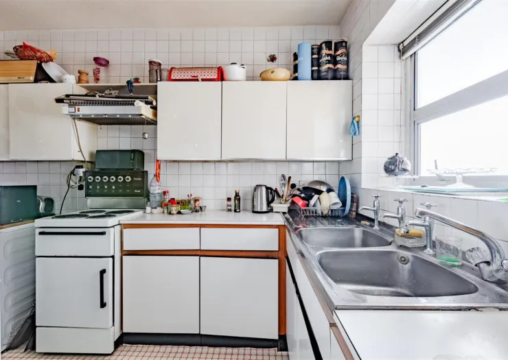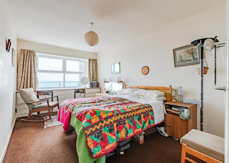An exceptional top-floor seafront apartment with stunning views, private garage, and huge potential for modernisation and reconfiguration (STC). This two bedroom property benefits from a lift in the building and a share of the freehold, offering both convenience and long-term value.