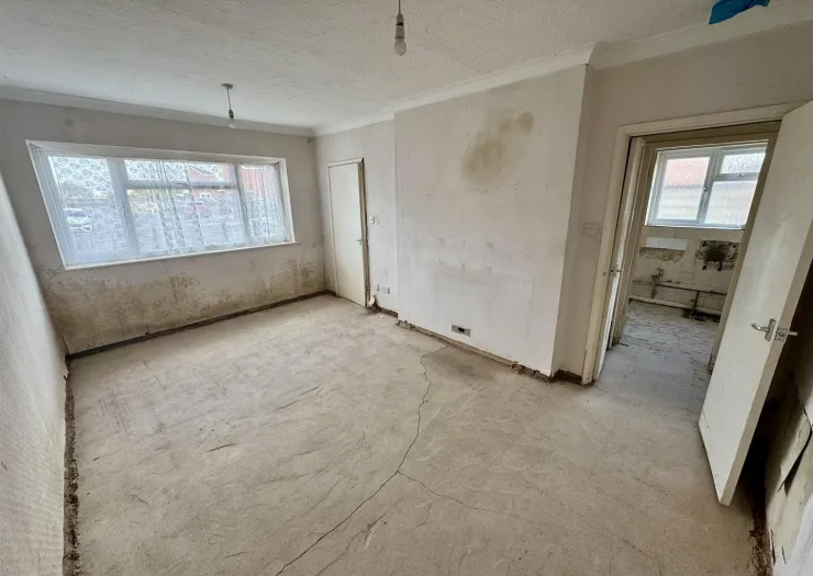 This semi-detached two-bedroom bungalow is located at the end of a quiet cul-de-sac and offers excellent potential for renovation. Externally, the property benefits from a small storage cupboard to the front, a driveway with potential to extend, and a manageable garden to the side and rear. The interior has been stripped out, and the property is currently presented as an empty shell, providing a good opportunity for refurbishment.