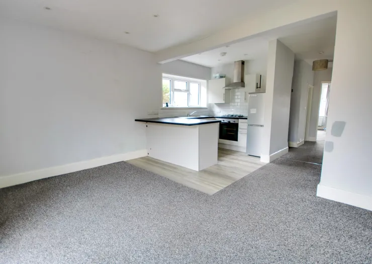 A semi detached bungalow with three bedrooms. You are welcomed by an impressive entrance hall which opens into the open plan kitchen/living area. This is situated at the rear of the property with french doors leading into the rear garden. The kitchen space offers a range of wall, base and drawer units with space for appliances. There are three bedrooms that are all considered double rooms. Externally, there is a driveway providing off-road parking. The rear garden is mainly laid to lawn with a patio seating area.