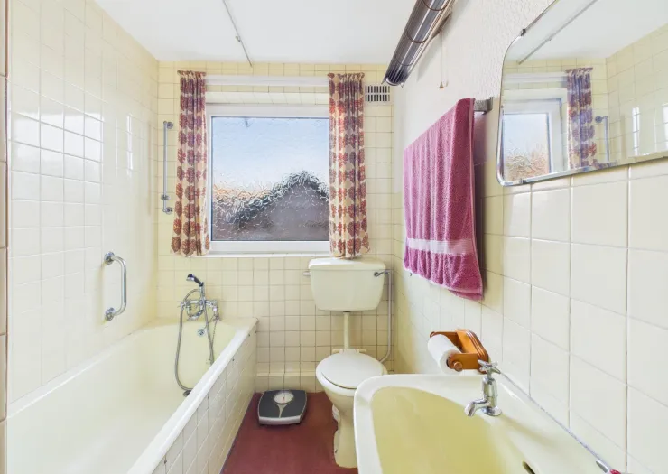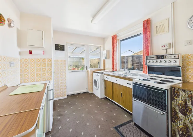 Semi-detached bungalow with three bedrooms. In need of modernisation. Freehold. Council Tax – C.