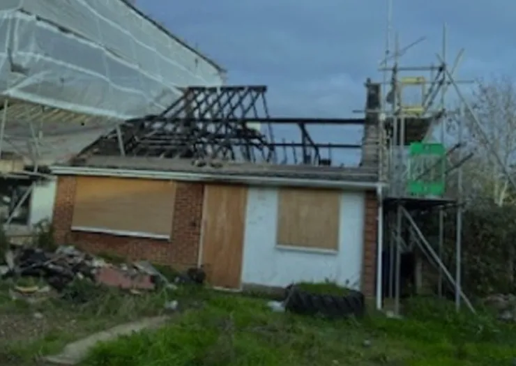 A semi-detached bungalow. The property has sustained fire damage and requires refurbishment. Accommodation is believed to comprise, two-bedrooms, a living room, a kitchen and a shower room.