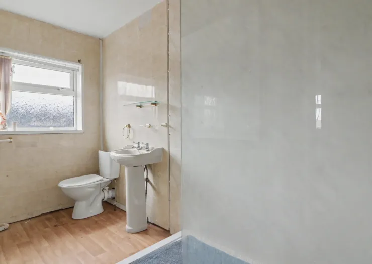 Semi-detached house with three bedrooms. In need of modernisation. Freehold. Council Tax – A.