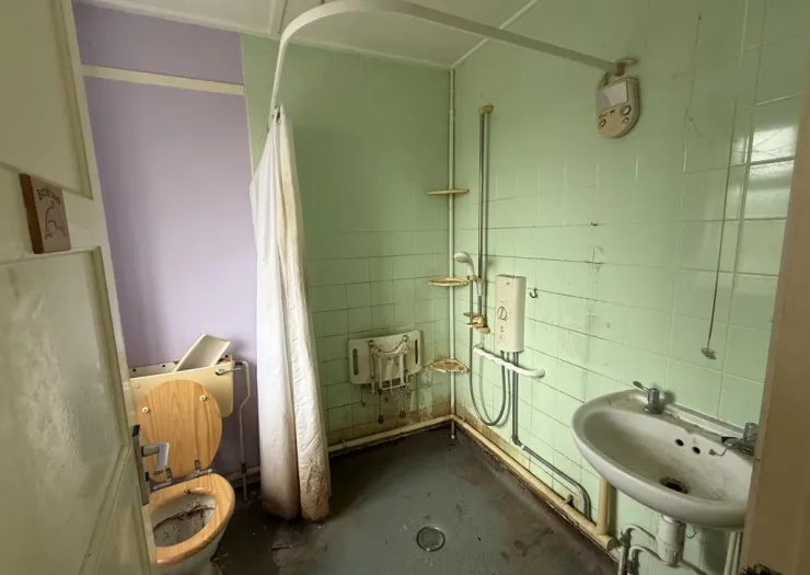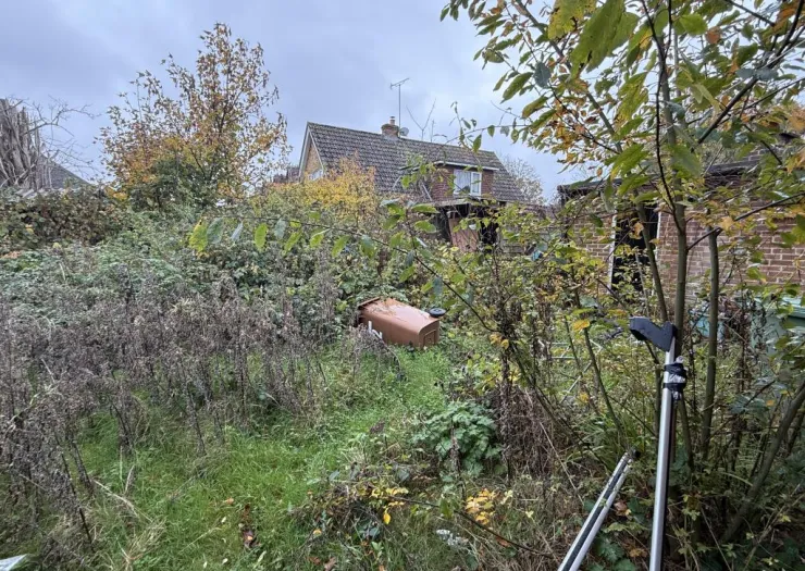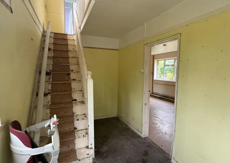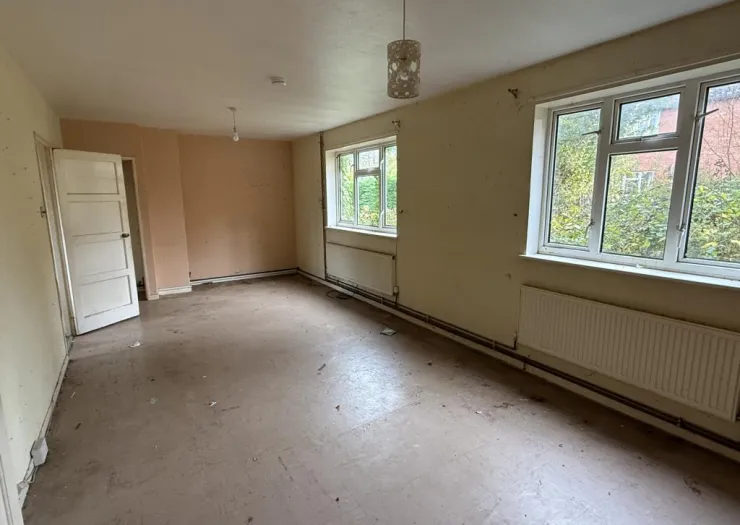 A semi-detached house of non-traditional construction, now in need of refurbishment. The property stands on a good sized plot with gardens to front, side and rear. The house is approached over a pedestrian access which is shaded brown on the location plan included in the sales details. Freehold with vacant possession.