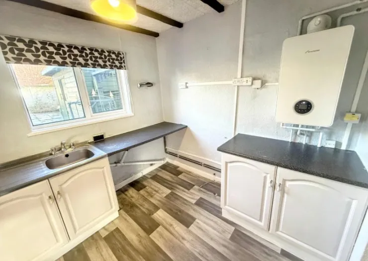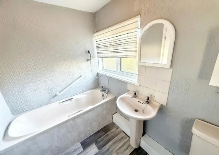 A vacant freehold three bedroom semi-detached property situated in a residential area. The property has an entrance hallway, lounge/dining room, kitchen, an upstairs bathroom and three bedrooms. Externally the property benefits from a gated driveway. To the rear, a turfed and paved garden.
