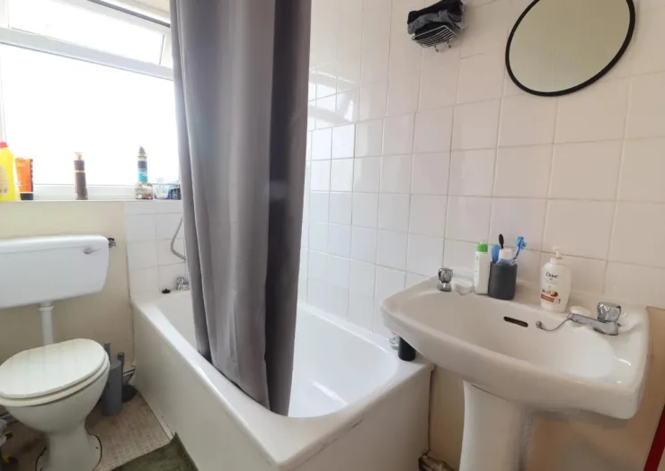 End-terrace house. Currently converted into 2 flats. Currently tenanted at £12,000 per annum. Three garages. Freehold. Council Tax Band – A.