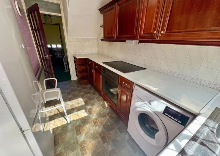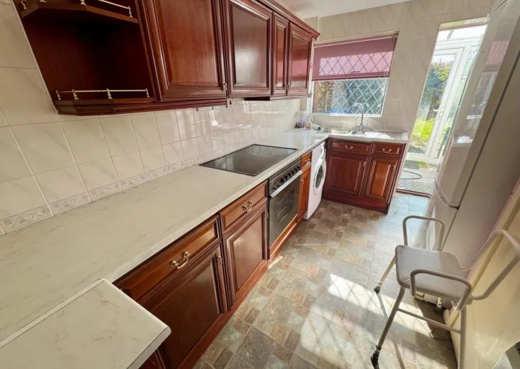 This two-bedroom terrace house is in need of improvement and re-decoration. It does have some double glazed windows. Front and rear gardens. Timber garage in the rear garden with access via a service road. Freehold with vacant possession.