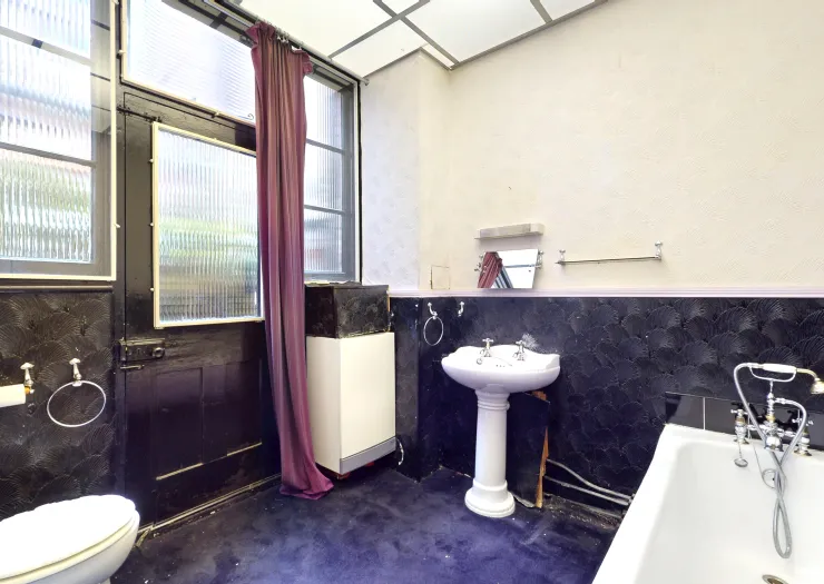 A terrace house requiring modernisation with spacious accommodation arranged on three floors. Benefits from gas-fired central heating (system not tested), cellar, front garden, and garden at rear. Vacant possession.