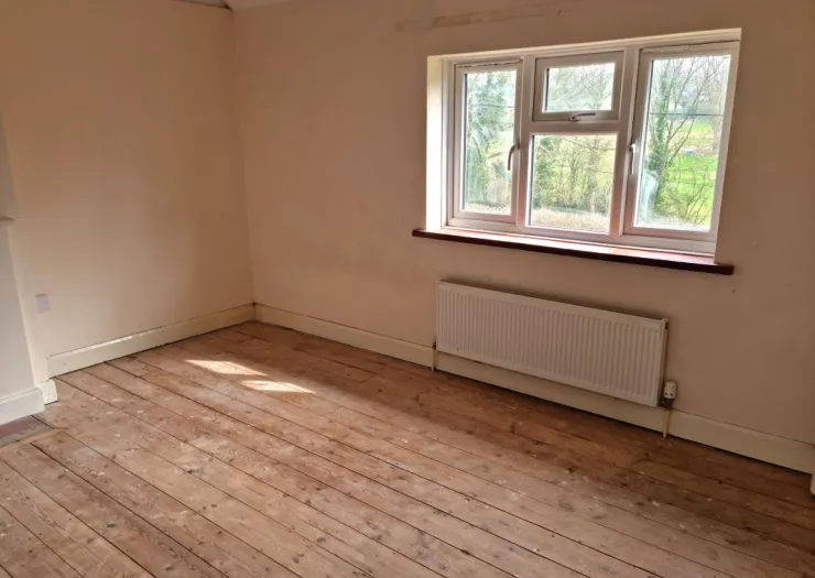 A three bedroom, semi-detached house. Entrance hall, sitting room, kitchen/dining room and ground floor bathroom with separate WC and store. Three first floor bedrooms. Enclosed garden to front and rear with rural views. On-street parking. No onward chain.