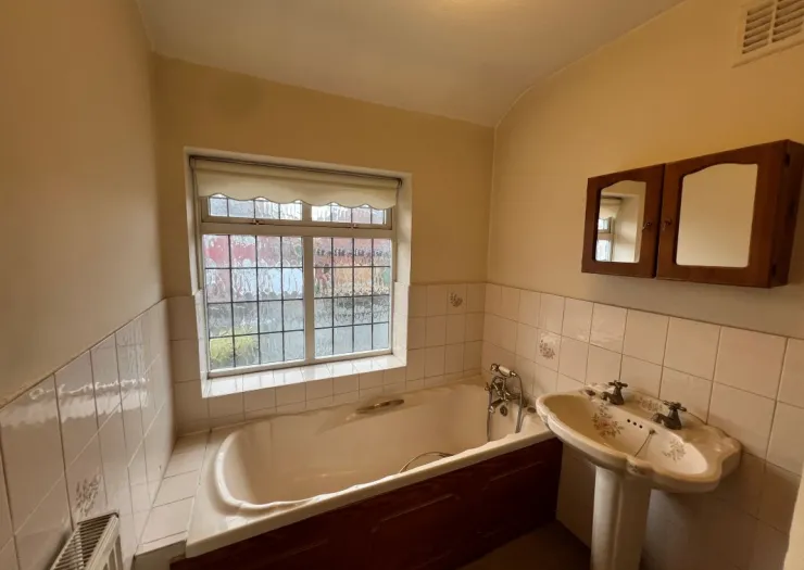 A 3 bedroom semi detached house, standing back from the road behind a driveway and foregarden. The property benefits from having a gas fired central heating system and UPVC double glazing, however is in need of modernisation. Vacant possession upon completion.
