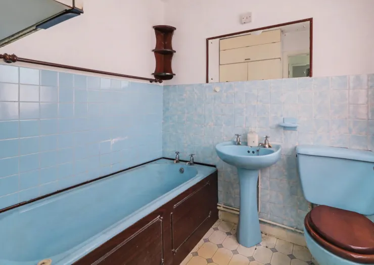 Mid-terrace house with three bedrooms. In need of modernisation. Freehold. Council Tax – A.
