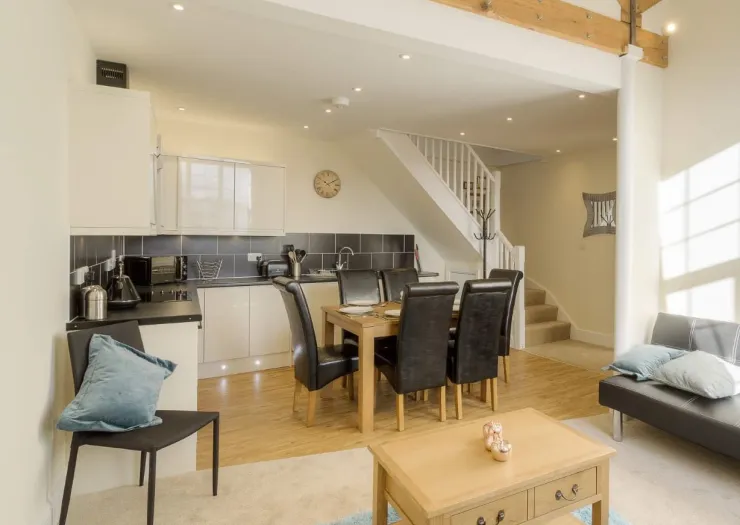 A two bedroom leasehold apartment, converted from a former shoe warehouse. The property is located on the first floor and includes an open plan lounge and kitchen, bedroom one, a shower room/WC and a mezzanine bedroom. The property extends to approximately 70 sq m (753 sq ft) GIA.