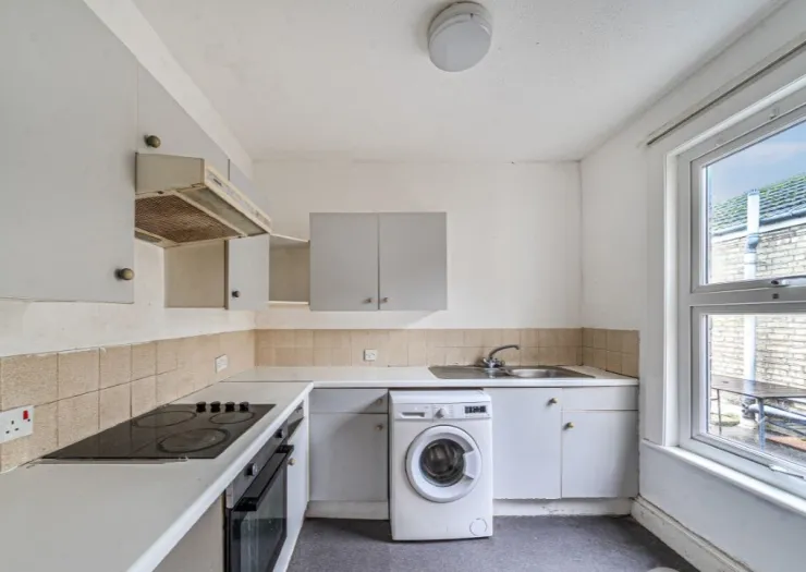 Situated on the top floor of a mixed-use building, this well-proportioned two-bedroom apartment requires refurbishment. The apartment benefits from a roof terrace area and an allocated parking space. Ideal for cash buyers and investors. Leasehold with vacant possession.