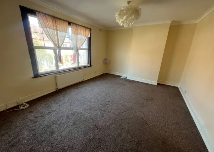 A vacant two bedroom first floor flat with own entrance. Shared rear garden. Ideal for investment.