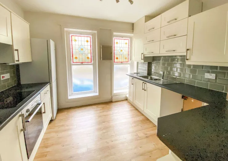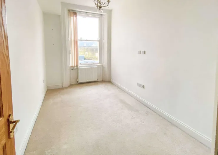 A two bedroom ground floor flat, forming part of an attractive Grade II listed building, in need of some modernisation, well located. Vacant.