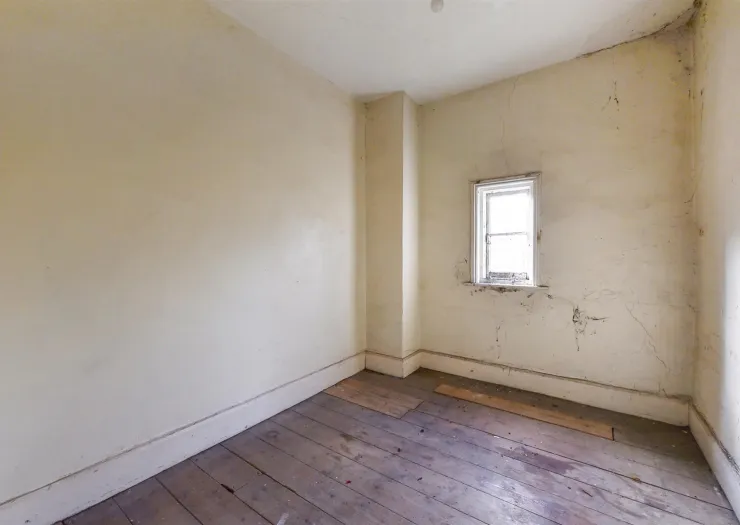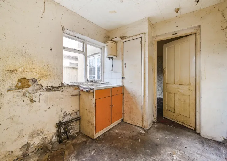 A semi-detached house which requires comprehensive refurbishment throughout. The property offers two spacious reception rooms, space for a kitchen, two generous double bedrooms, plus a study or optional third bedroom. To the front, the property has a laidlawn garden along with two parking spaces. Side access leads to a rear courtyard garden with a shed.